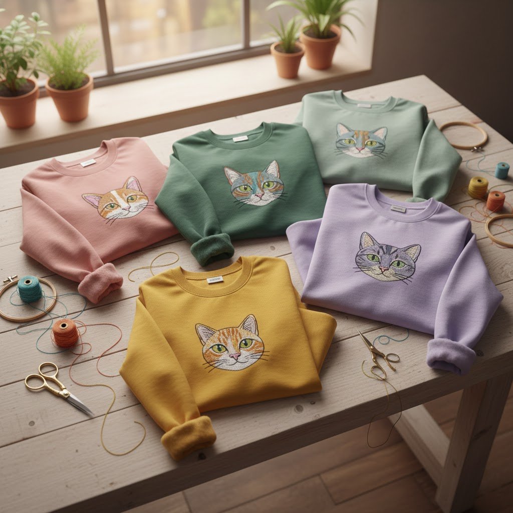 Elegant and adorable embroidered apparel for feline enthusiasts.