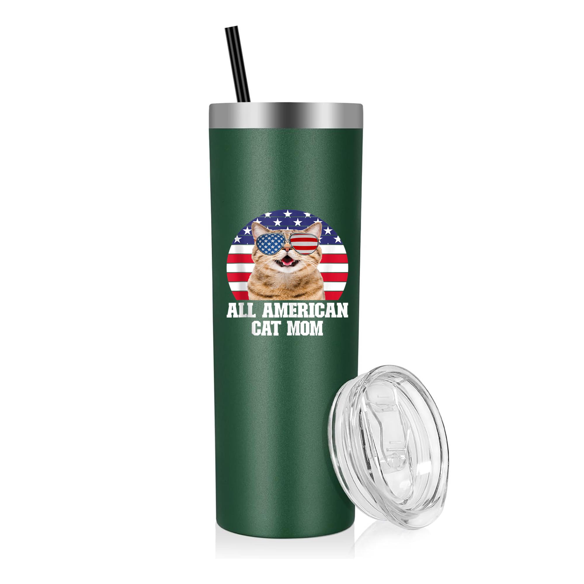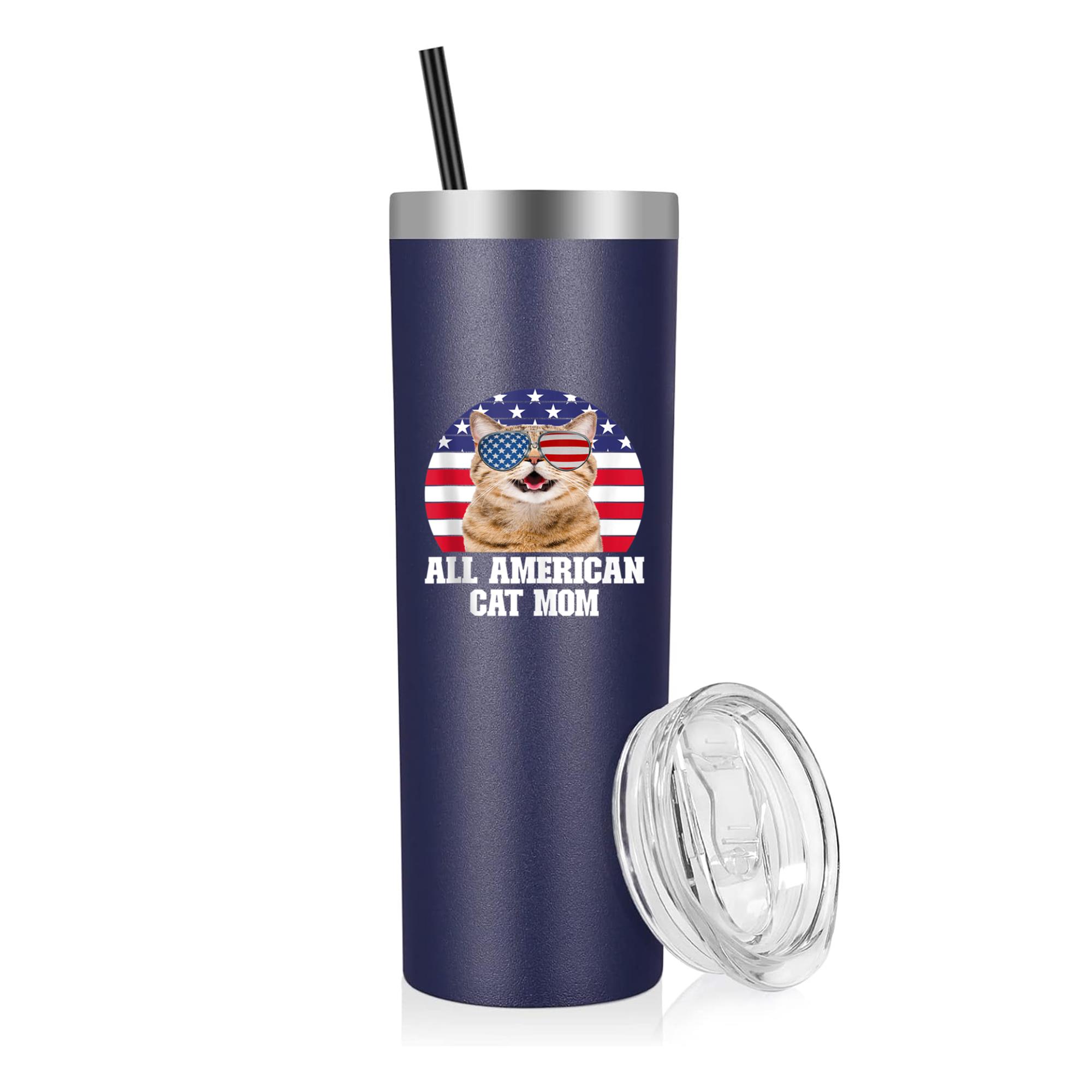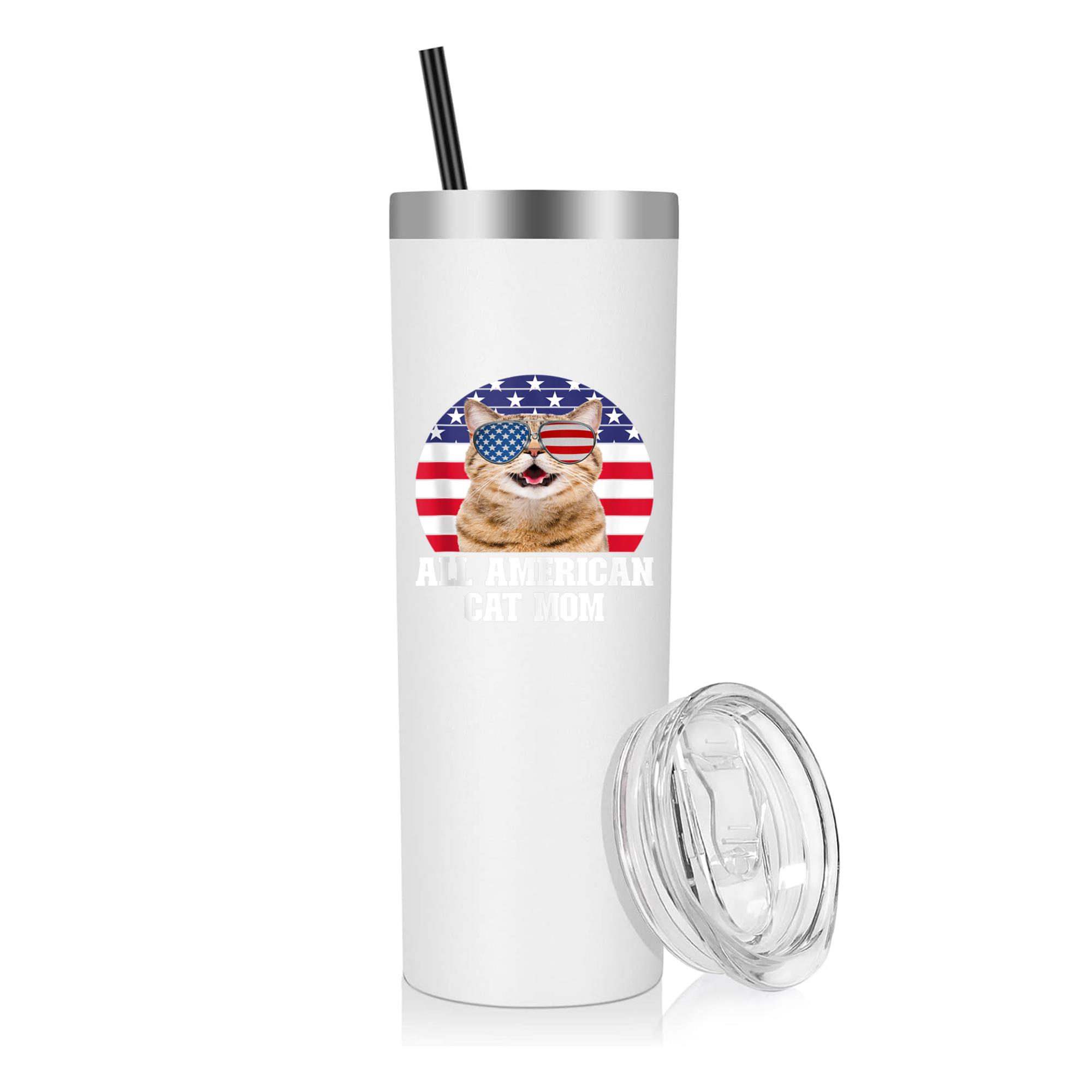 All American Cat Mom Patriotic USA Flag 20oz Stainless Steel Tumbler 20oz Stainless Steel Tumbler – Double-Wall Vacuum Insulated Travel Cup with Lid