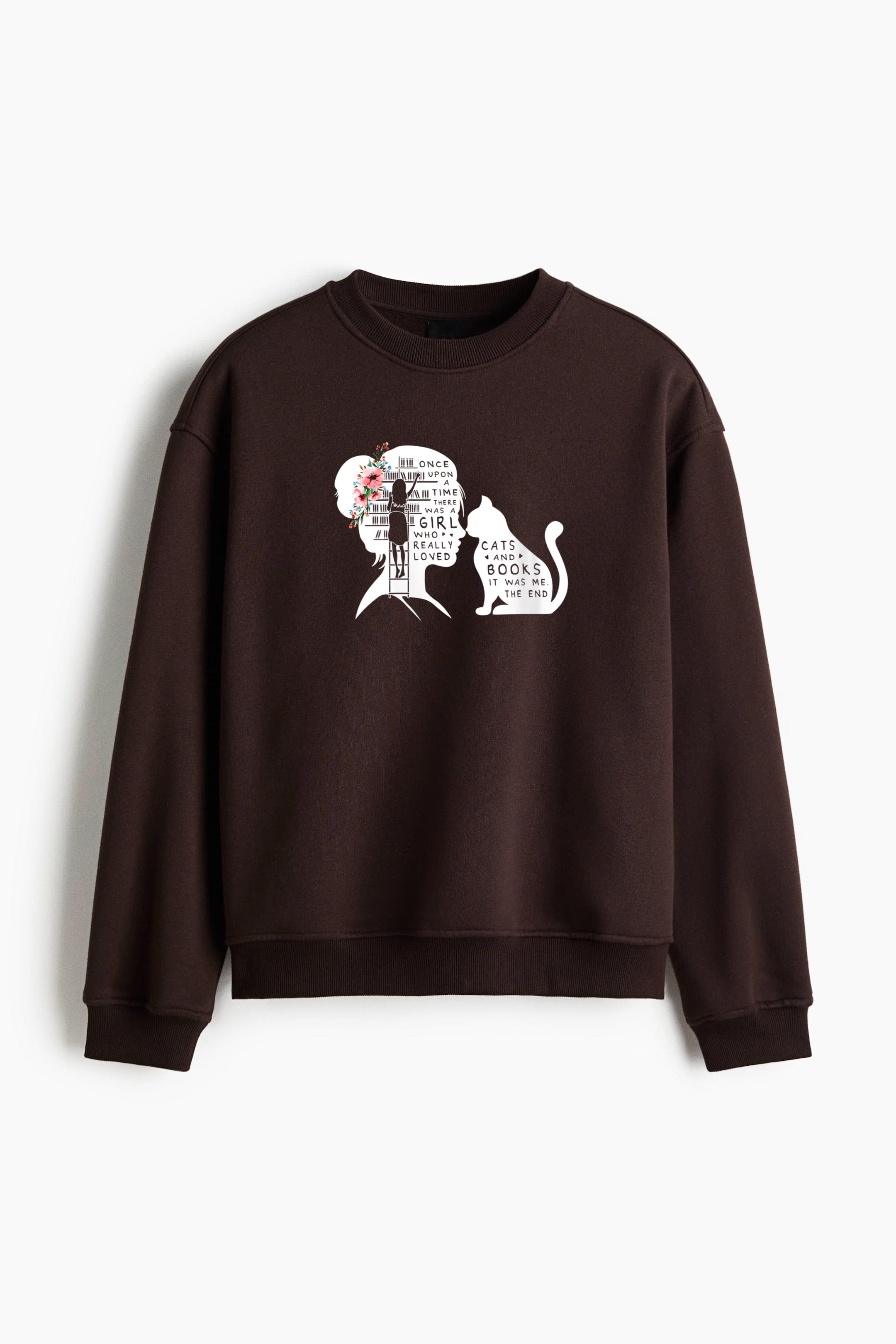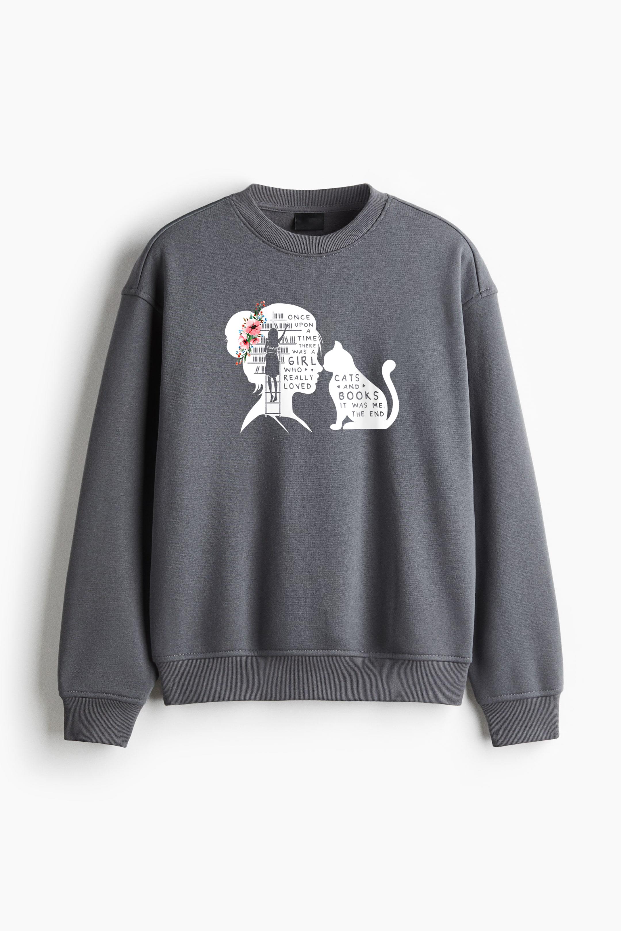 Cat Book Lovers Reading Regular Fit Printed Sweatshirt Regular Fit Printed Sweatshirt – Soft Cotton Fleece Pullover with Graphic Design