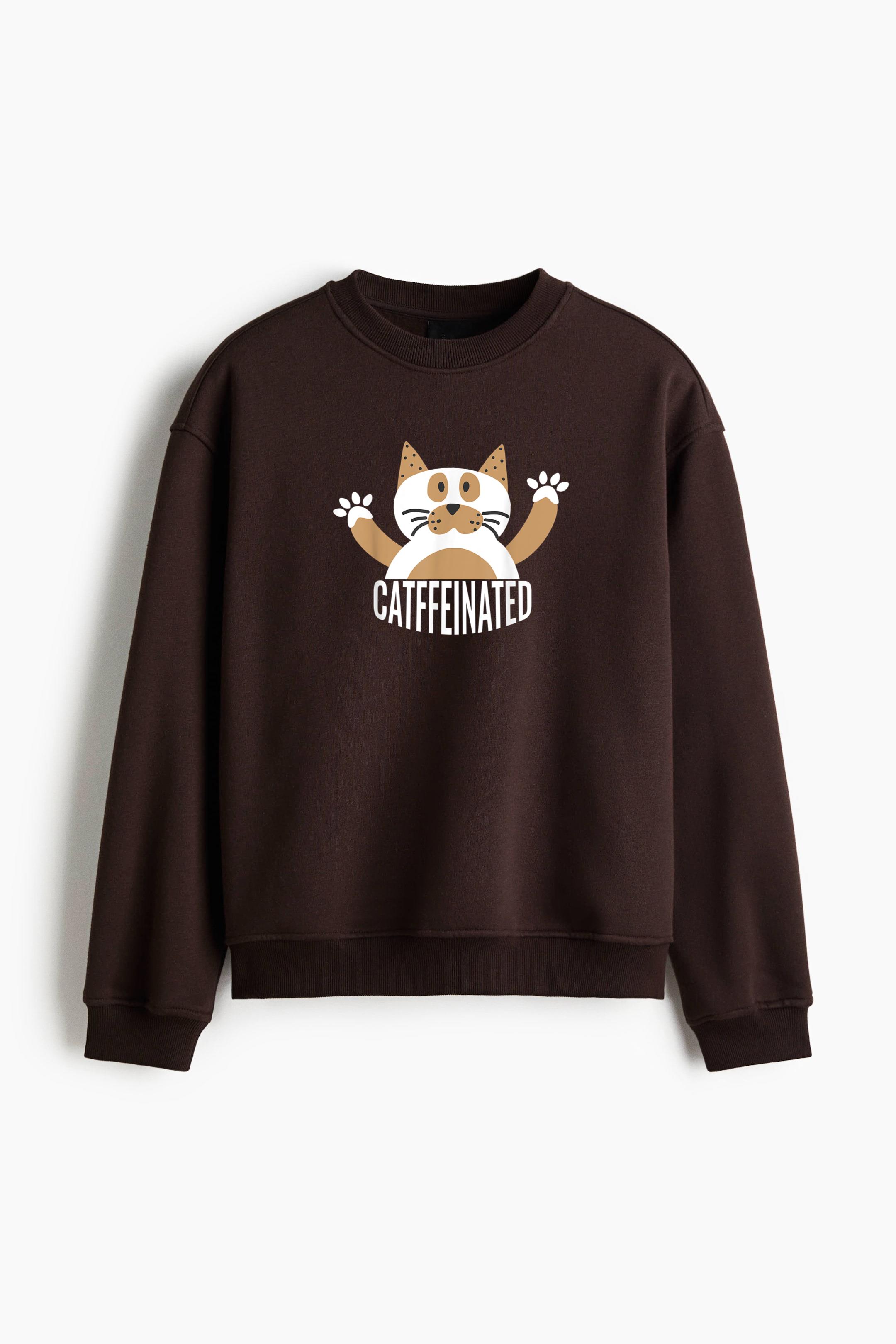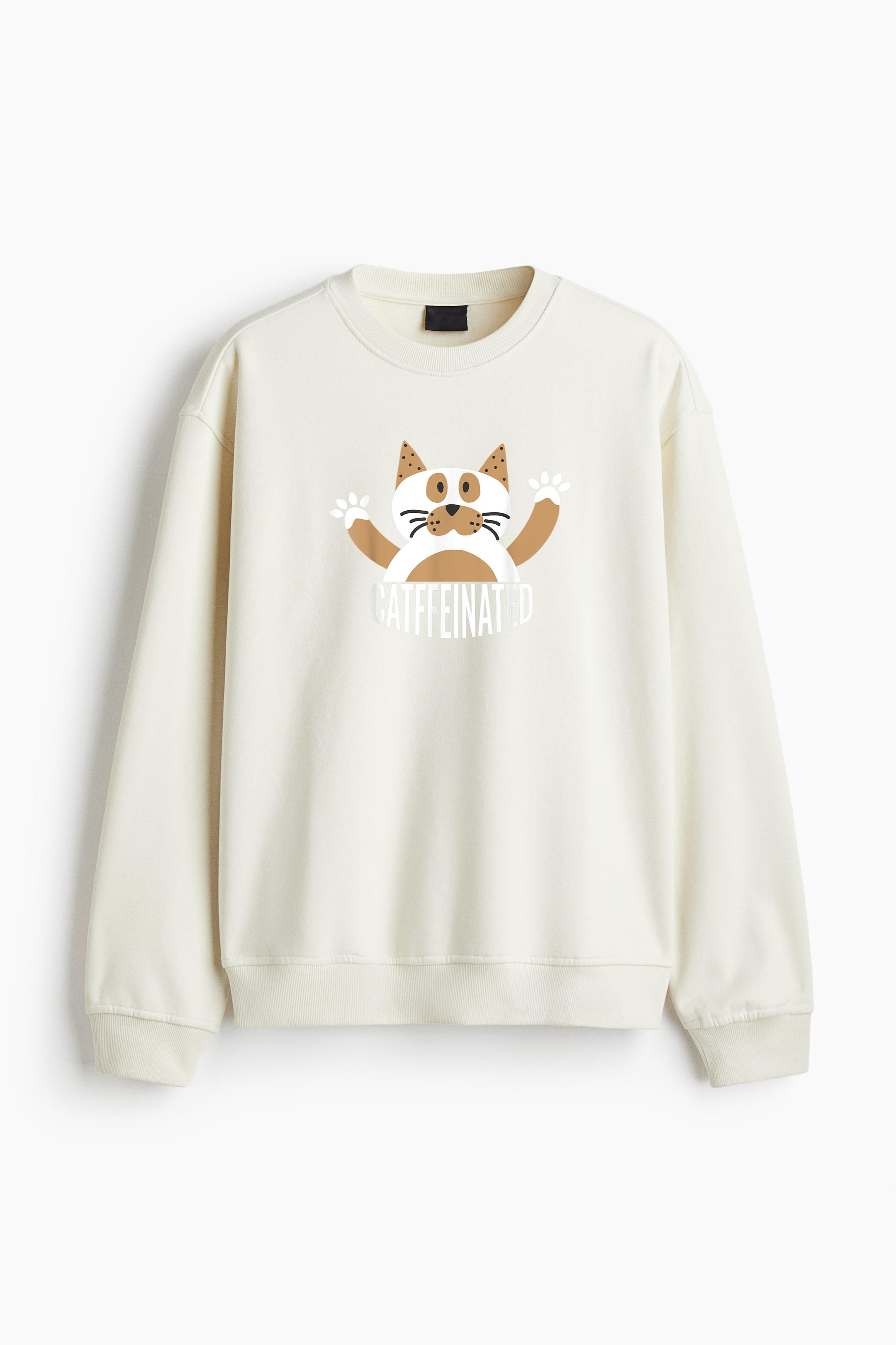Cats And Caffeine Regular Fit Printed Sweatshirt Regular Fit Printed Sweatshirt – Soft Cotton Fleece Pullover with Graphic Design