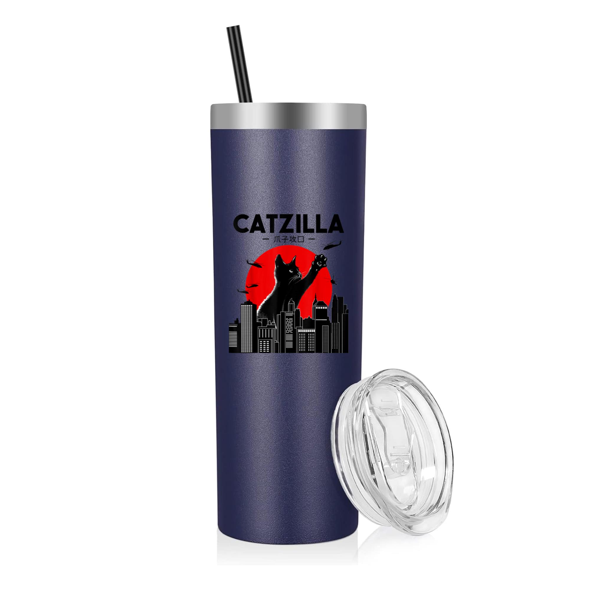 Catzilla Funny Cat 20oz Stainless Steel Tumbler 20oz Stainless Steel Tumbler – Double-Wall Vacuum Insulated Travel Cup with Lid