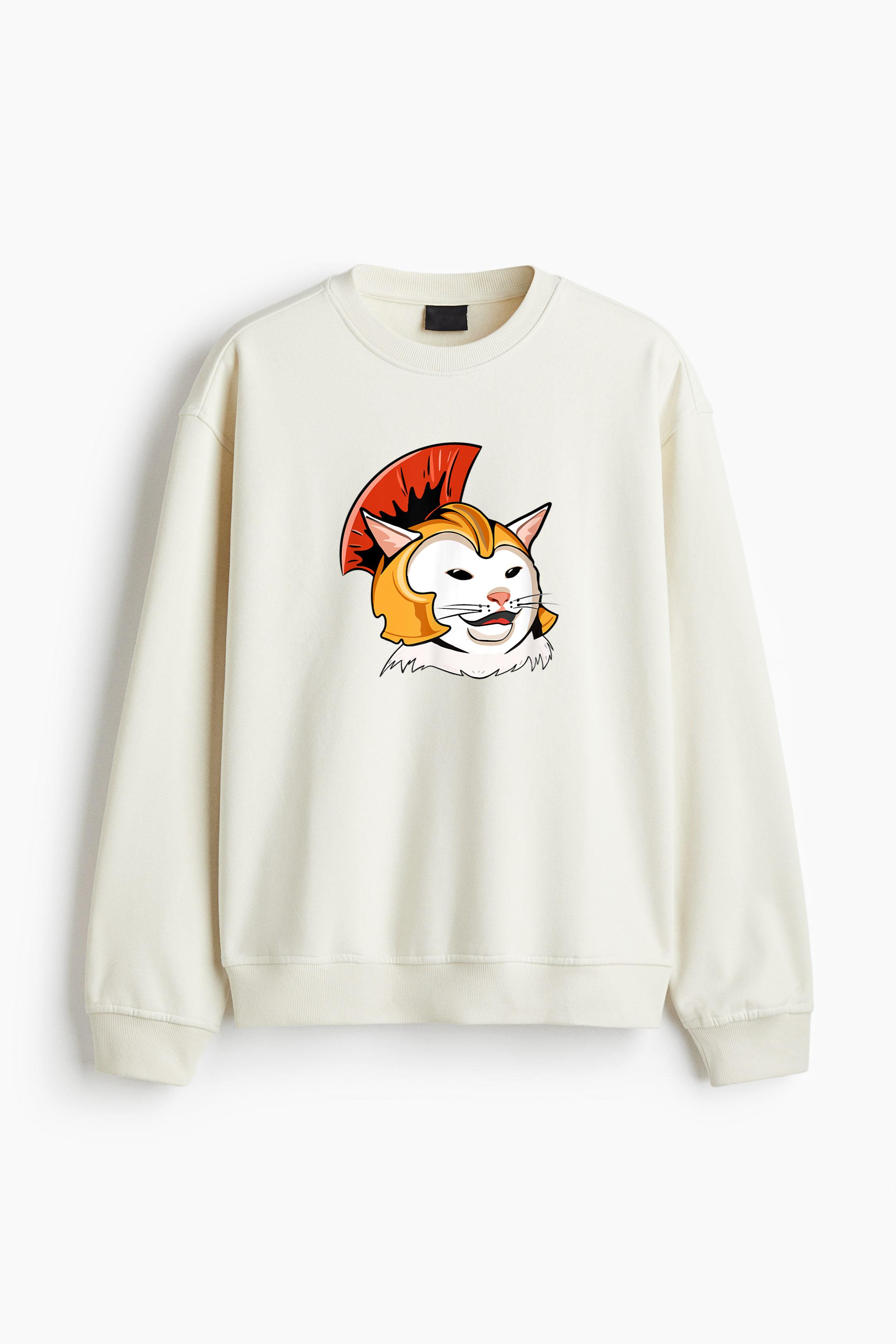 Cute Cat In Roman Helmet Regular Fit Printed Sweatshirt Regular Fit Printed Sweatshirt – Soft Cotton Fleece Pullover with Graphic Design