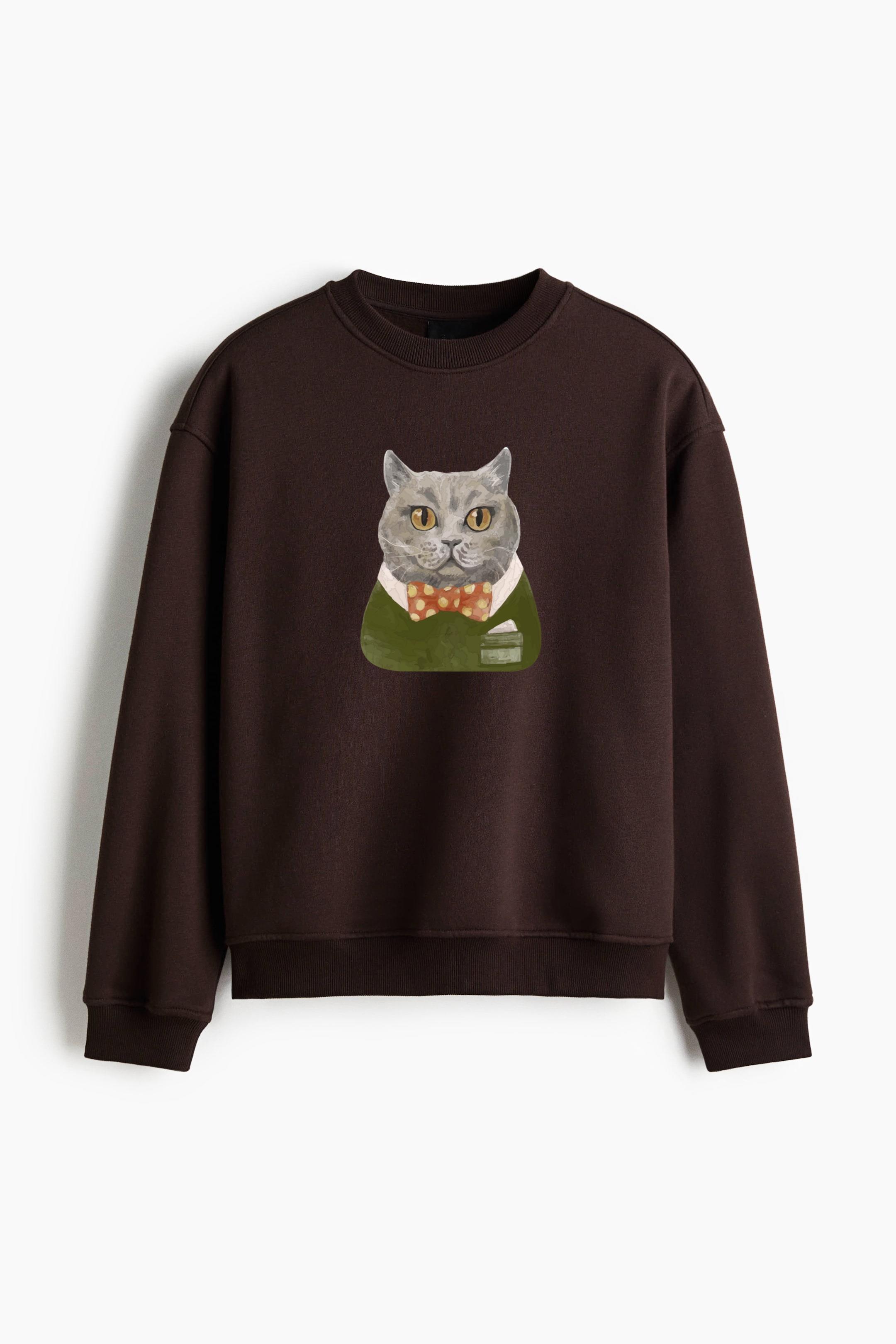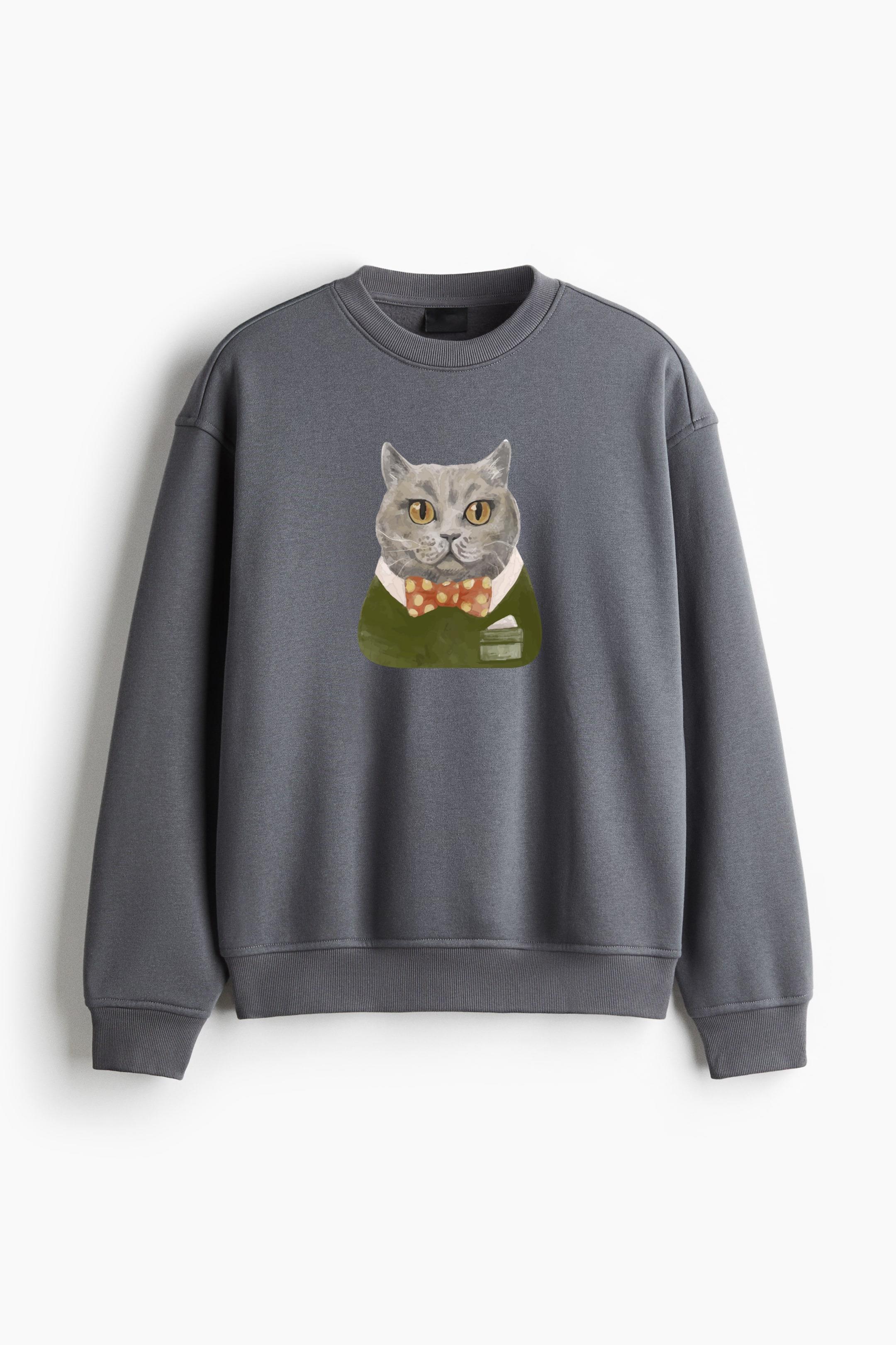 Gentleman Cat Character Watercolor Regular Fit Printed Sweatshirt Regular Fit Printed Sweatshirt – Soft Cotton Fleece Pullover with Graphic Design