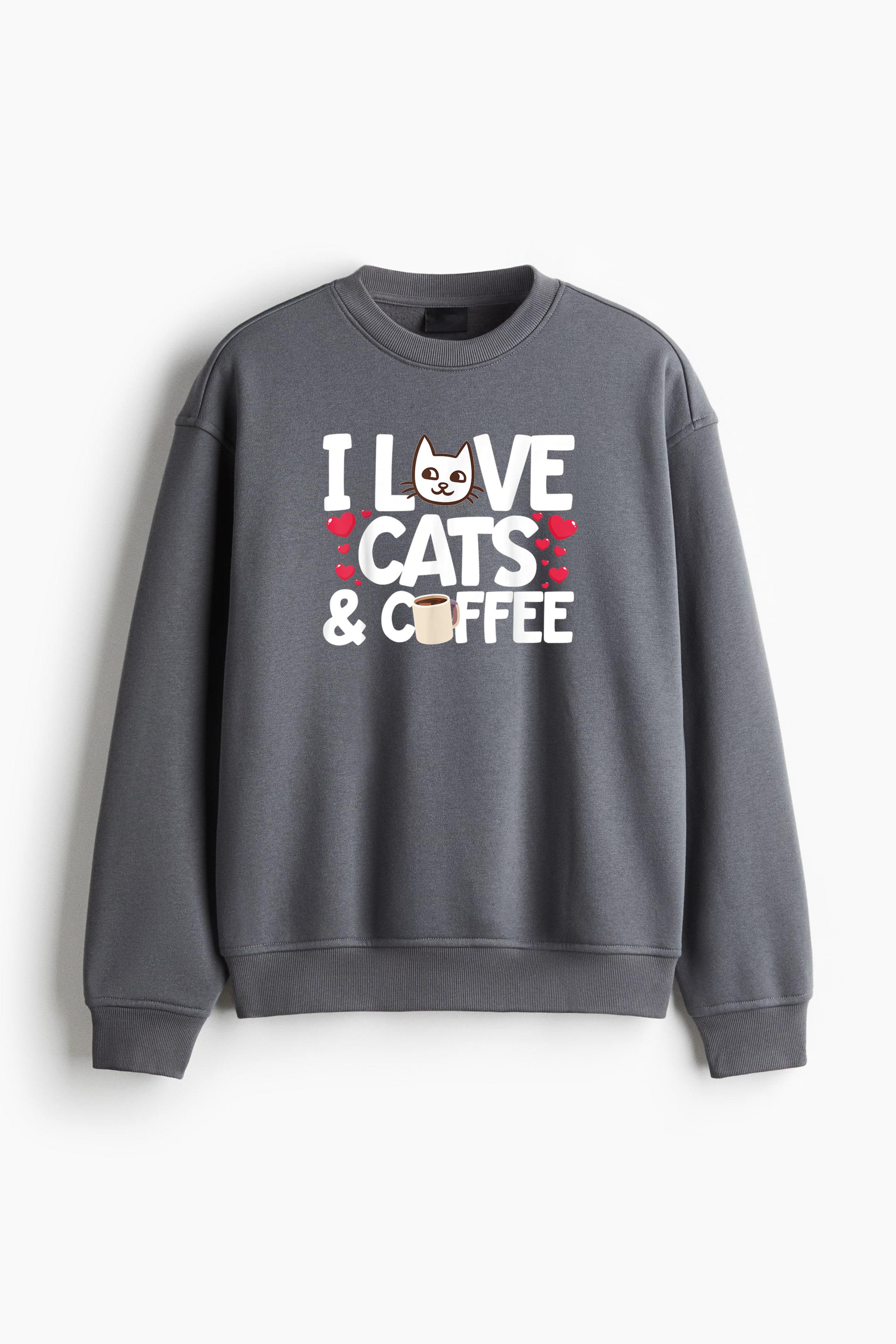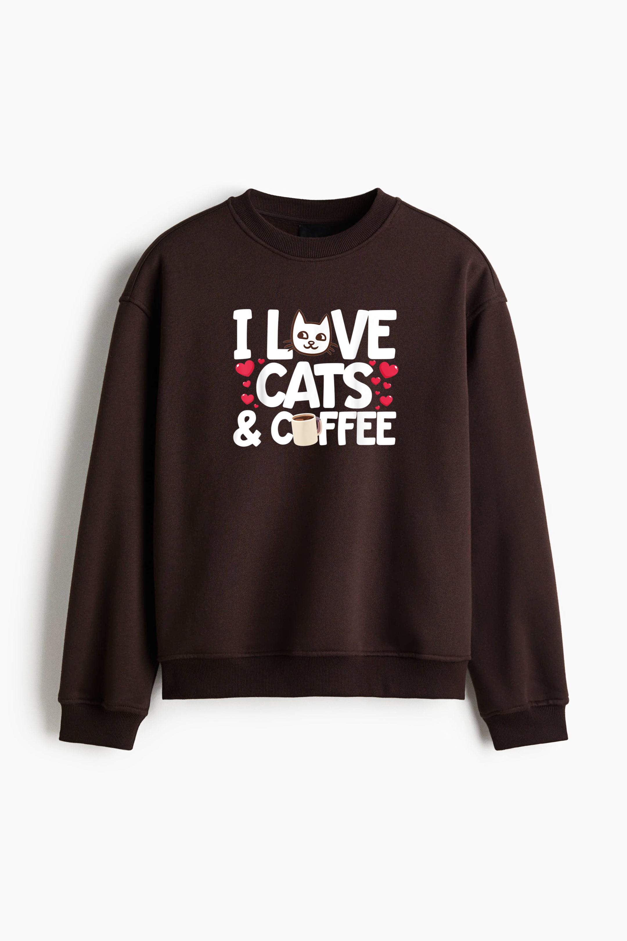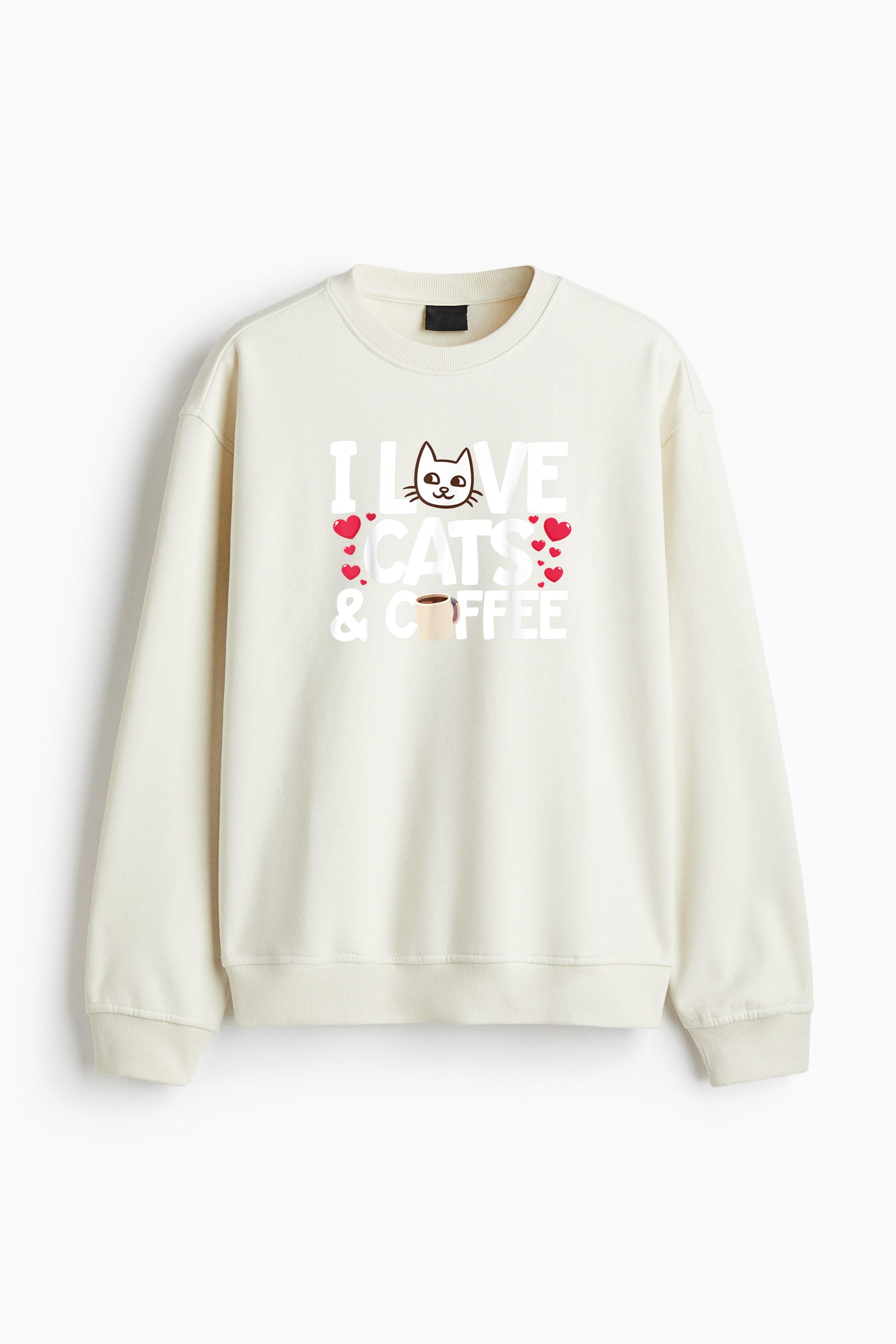 I Love Cats And Coffee Regular Fit Printed Sweatshirt Regular Fit Printed Sweatshirt – Soft Cotton Fleece Pullover with Graphic Design