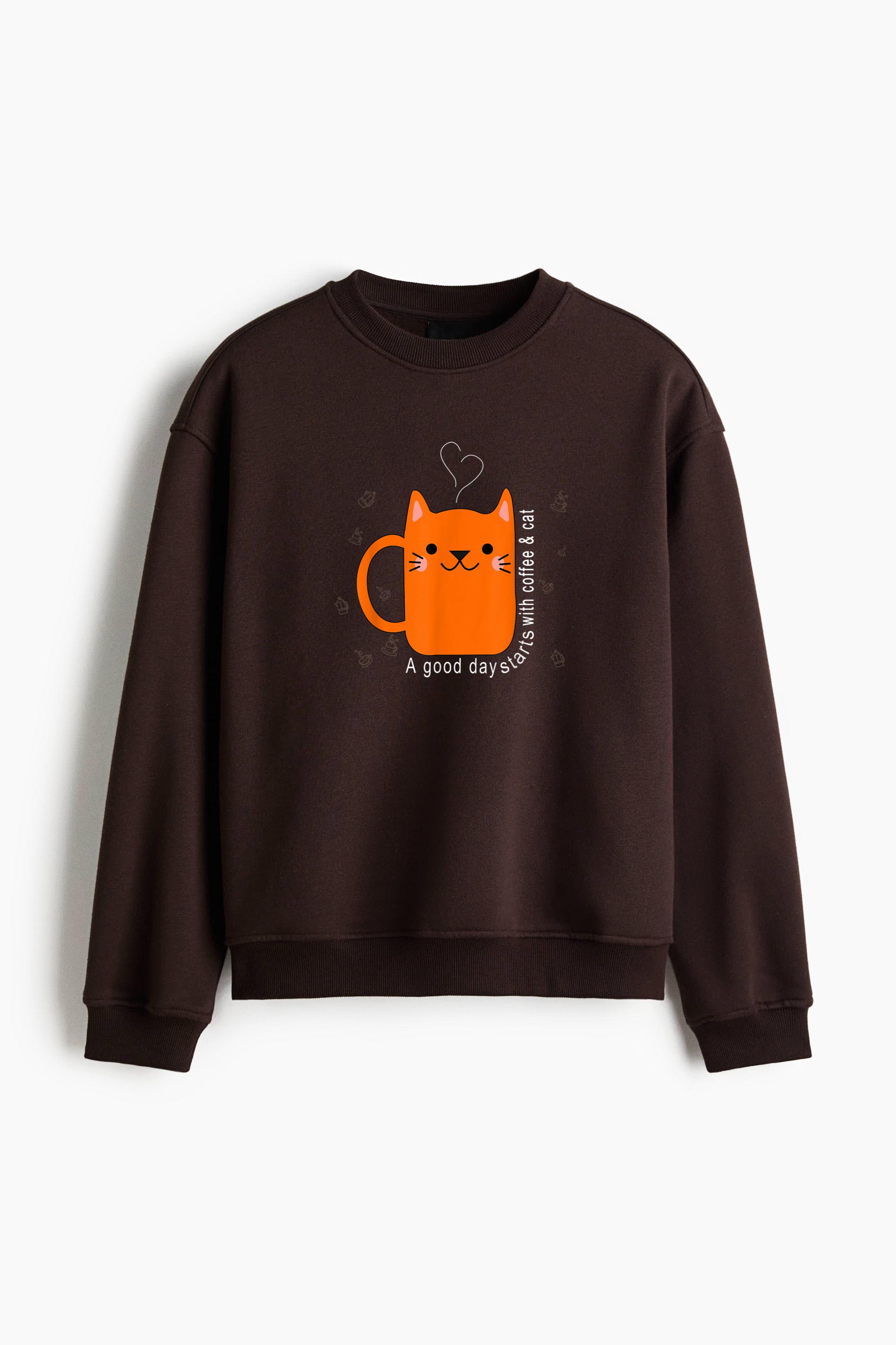 Express your style with our Orange Cat Coffee Mug Regular Fit Printed Sweatshirt Regular Fit Printed Sweatshirt. Made from soft cotton-blend fleece, this cozy pullover features a clean fit and durable print that brings personality and comfort to your everyday wardrobe.