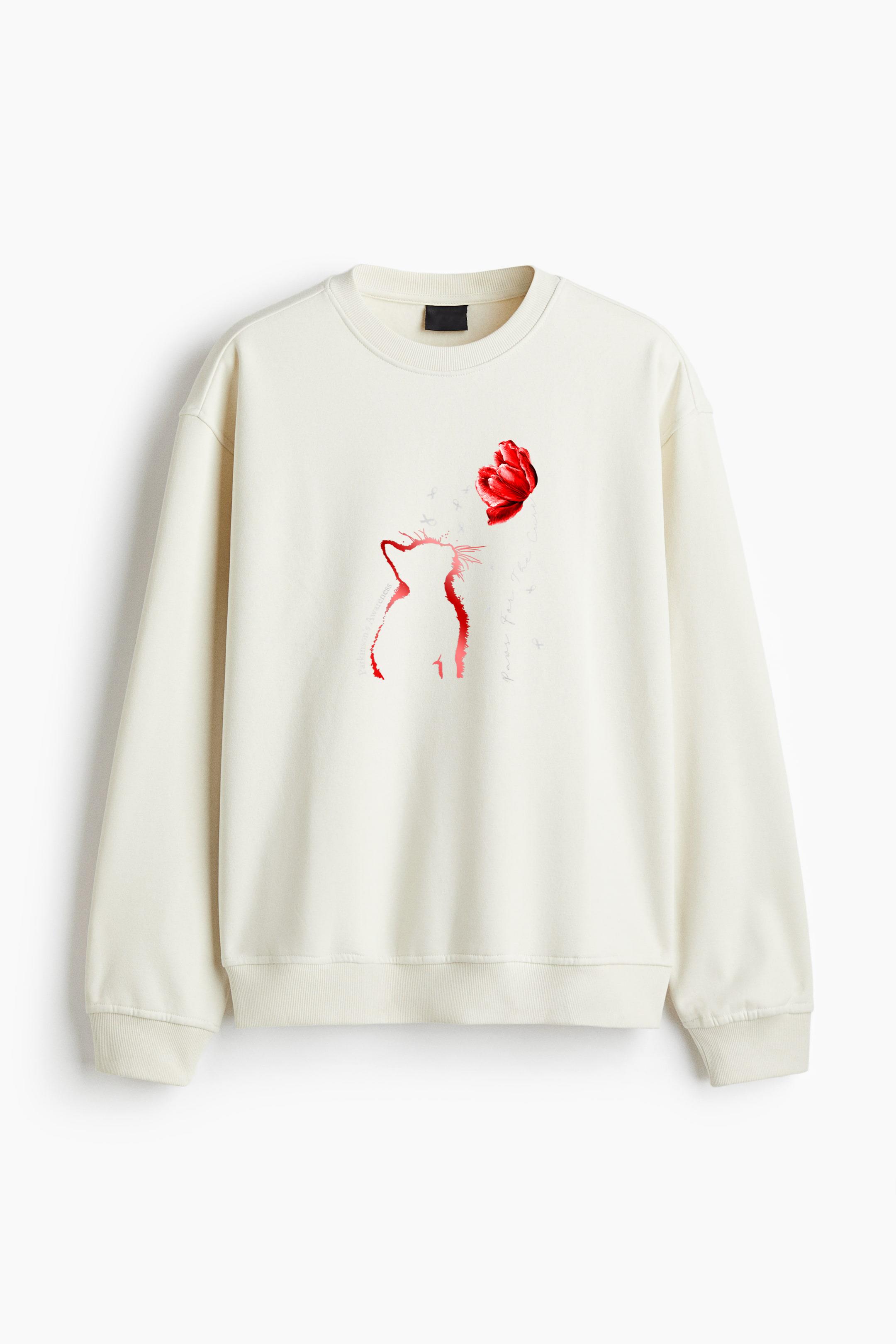 Red Tulip Cat Paws For The Cure Parkinsons Awareness Regular Fit Printed Sweatshirt Regular Fit Printed Sweatshirt – Soft Cotton Fleece Pullover with Graphic Design