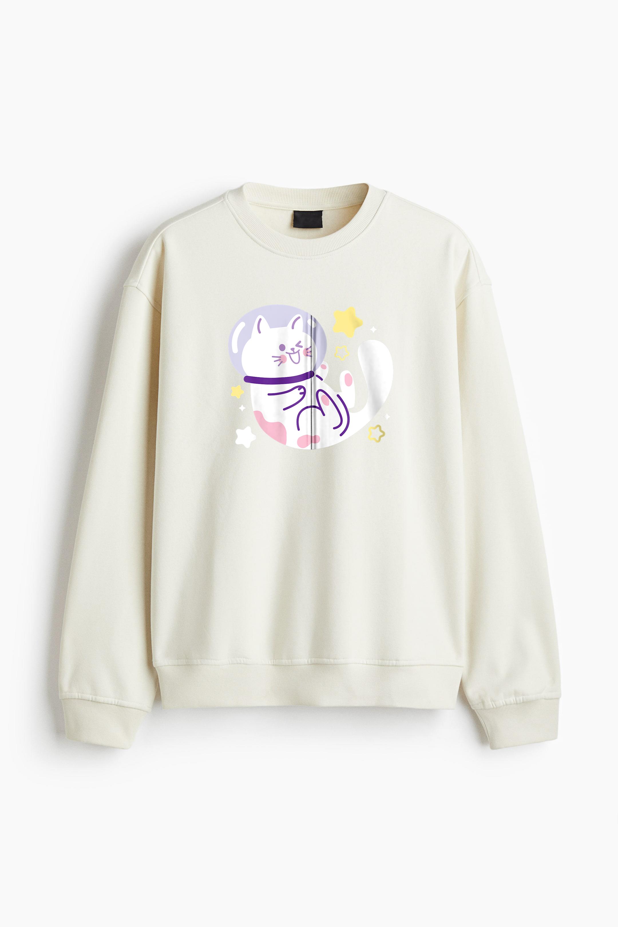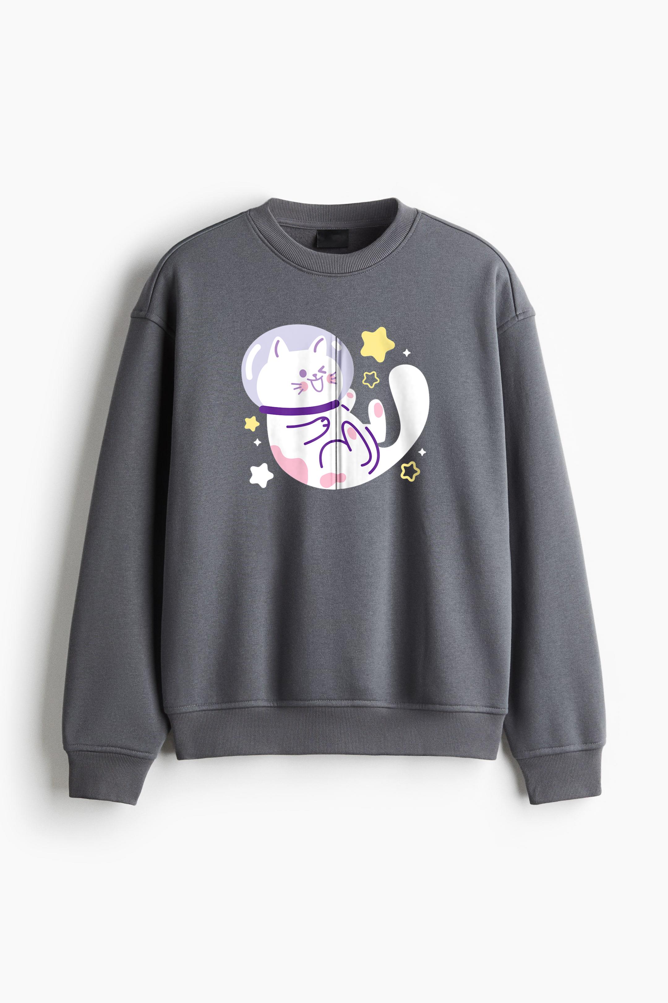 Space Cat Kitten Cool Regular Fit Printed Sweatshirt Regular Fit Printed Sweatshirt – Soft Cotton Fleece Pullover with Graphic Design